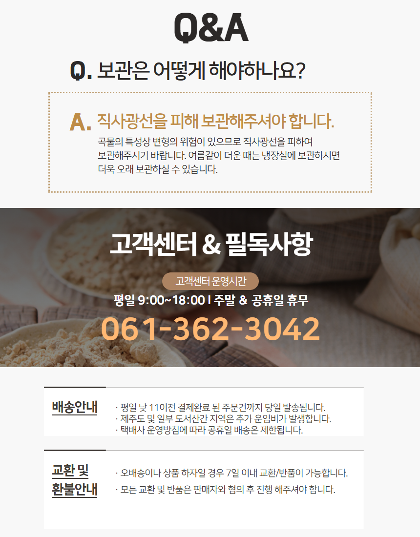 ◆ 해당상품에 대한 문의는 고객상담을 이용하실 수 있으며, 교환 및 반품 문의는 고객센터 061-362-3042으로 연락주시기 바랍니다.